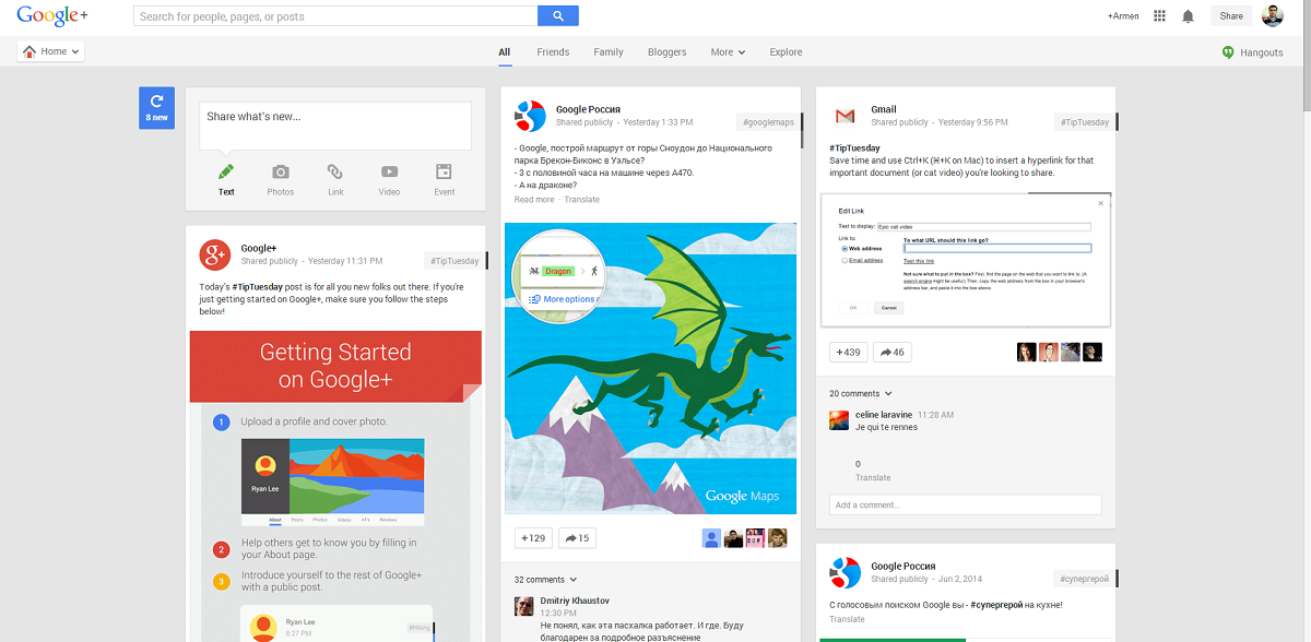 Google+ ցանցում չեն փորձում գովազդների հաշվին գումար աշխատել: Այստեղ ցուցադրվում է միայն այն ինֆորմացիան, որը Դուք ցանկանում եք տեսնել: